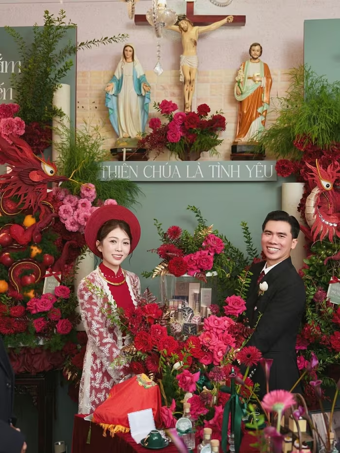 Chia sẻ với Tri Thức - Znews, cô dâu Hồng Thắm (quê Lâm Đồng) cho biết cô và chồng là Hữu Tiến (đến từ Hà Tĩnh) cùng sinh năm 2000. Cặp đôi tổ chức lễ dạm ngõ vào ngày 19/5/2025 và đám cưới vào ngày 18/4 vừa qua.
