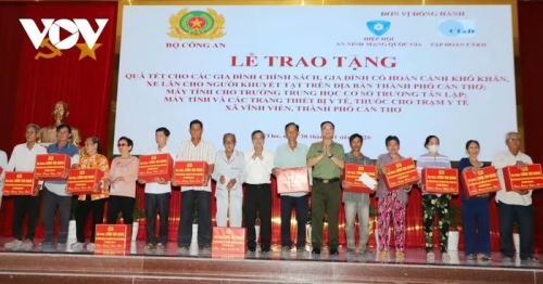 Tại buổi lễ, Thượng tướng Phạm Thế Tùng cùng Đoàn công tác đã trao bảng tượng trưng 1.000 phần quà Tết cho các hộ gia đình có hoàn cảnh khó khăn thuộc 4 xã Vĩnh Viễn, Xà Phiên, Lương Tâm và Vĩnh Thuận Đông; 390 xe lăn cho người khuyết tật trên địa bàn TP. Cần Thơ.