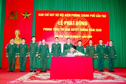 Tại hội nghị, Bộ đội Biên phòng thành phố Cần Thơ phát động phong trào Thi đua Quyết thắng năm 2026 với chủ đề: “Đoàn kết, kỷ cương, đột phá, sáng tạo, Quyết thắng”, với tư tưởng chỉ đạo xuyên suốt là: Tăng cường đoàn kết, giữ vững kỷ cương, quyết tâm đột phá, đổi mới sáng tạo, hoàn thành xuất sắc nhiệm vụ.