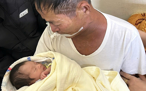 Ông nội đeo ống thở, gắng bế cháu nội lần cuối trước khi qua đời