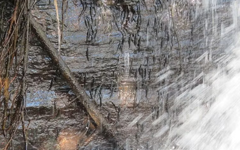 Các nhà nghiên cứu cho biết hàng ngàn con cá nhỏ dùng vây để 'leo' lên vách của thác Luvilombo (Congo). Hành trình 'leo' thác của chúng kéo dài khoảng 10 giờ.