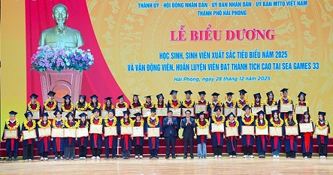 Tối 28/12, UBND TP Hải Phòng tổ chức Lễ biểu dương học sinh, sinh viên xuất sắc tiêu biểu năm 2025 và vận động viên, huấn luyện viên đạt thành tích cao tại SEA Games 33.