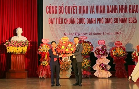 Chiều 26/11, Trường Cao đẳng Sư phạm Quảng Trị tổ chức Lễ công bố quyết định, vinh danh nhà giáo đạt tiêu chuẩn chức danh Phó Giáo sư năm 2025.