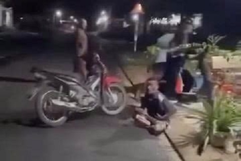 Một clip ghi lại cho thấy hai thanh niên đuổi theo một người đàn ông. Người đàn ông chạy vấp ngã ra đường.