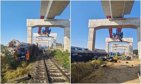 Cần cẩu xây dựng rơi trúng tàu hỏa Thái Lan, hơn 50 người thương vong