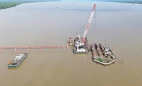 Tại công trường cầu Đại Ngãi 1, tiếng máy khoan, tiếng cẩu rền vang không dứt trên mặt sông Hậu rộng lớn. Tại dự án cầu dây văng hơn 3.900 tỷ đồng, nhiều hạng mục trọng yếu đã vượt tiến độ.