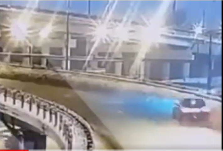 Đây là khoảnh khắc kinh hoàng khi một chiếc Mercedes chạy quá tốc độ đâm xuyên qua rào chắn cầu vượt, khiến hai người thiệt mạng.