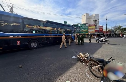 Xe máy va chạm với xe khách ở ngã tư Biển Hồ, 1 người tử vong