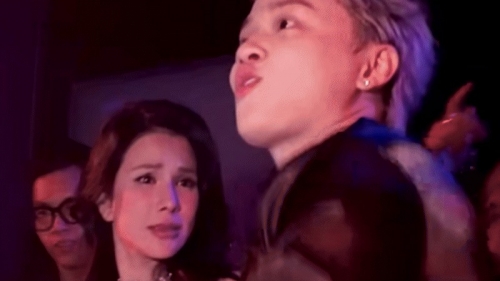 Diệp Lâm Anh bị tóm khoảnh khắc nhăn mặt khó chịu, lùi về phía sau và nhìn chằm chằm vào DJ. |