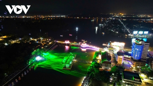 Điểm đặc biệt là lần đầu sân khấu thực cảnh trên sông được tạo thành từ những chiếc sà lan to - rộng. Trong đó, một sà lan dài 85m - rộng 20m, tải trọng 3.600 tấn làm sân khấu chính; chiếc sà lan dài 60m - rộng 16m, tải trọng 2.200 tấn làm hậu trường sân khấu chính; một chiếc sà lan khác 2.200 tấn làm sân bắn pháo hoa. Đơn vị thi công cũng đảm bảo hoàn thành thảm nhựa đường cặp bờ kè rạch Khai Luông trước đêm khai mạc.
