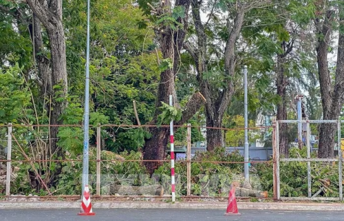 14 cây xanh trong khu đất xây dựng Thư viện thành phố Cần Thơ sẽ được di dời đi nơi khác. Ảnh: Thanh Liêm - TTXVN |