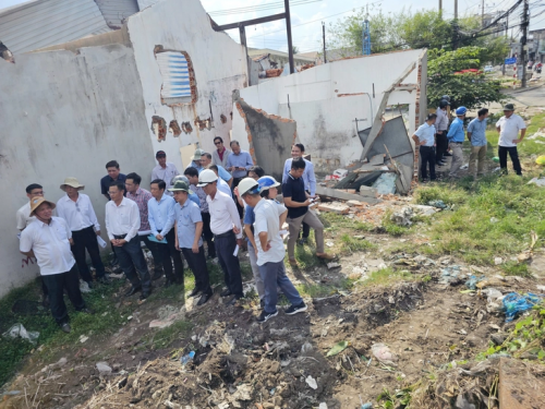 Đoàn công tác của lãnh đạo UBND thành phố Cần Thơ kiểm tra tiến độ triển khai dự án nâng cấp, mở rộng quốc lộ 91 đoạn km0 đến km7. Đây là một trong những dự án chậm tiến độ của thành phố, chủ yếu do vướng mắc trong khâu giải phóng mặt bằng - Ảnh: CHÍ QUỐC |