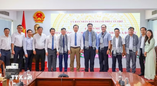 Chiều 25/4, tại Cần Thơ, Phó Chủ tịch Ủy ban Nhân dân thành phố Cần Thơ Vương Quốc Nam làm việc với Đoàn đại biểu Hiệp hội Doanh nhân và Đầu tư Việt Nam - Hàn Quốc (VKBIA) do Tiến sỹ Trần Hải Linh, Chủ tịch Hiệp hội làm Trưởng đoàn nhằm đánh giá kết quả hợp tác thời gian qua và thảo luận phương hướng đẩy mạnh xúc tiến đầu tư, thương mại và đào tạo nhân lực trong giai đoạn mới.