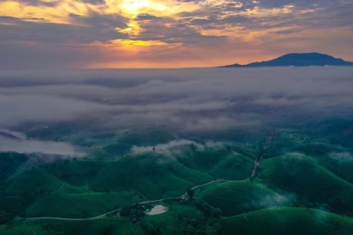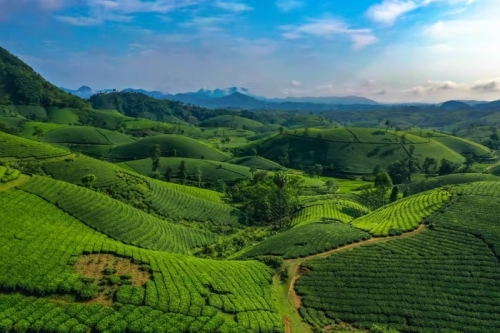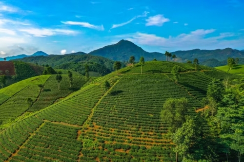 Với thắng cảnh tuyệt đẹp do thiên nhiên ban tặng cùng khí hậu ôn hòa cộng với bàn tay chăm chỉ của người nông dân, hàng trăm đồi chè đều tăm tắp nhìn từ trên cao tạo nên một khung cảnh thi vị hiếm có. |