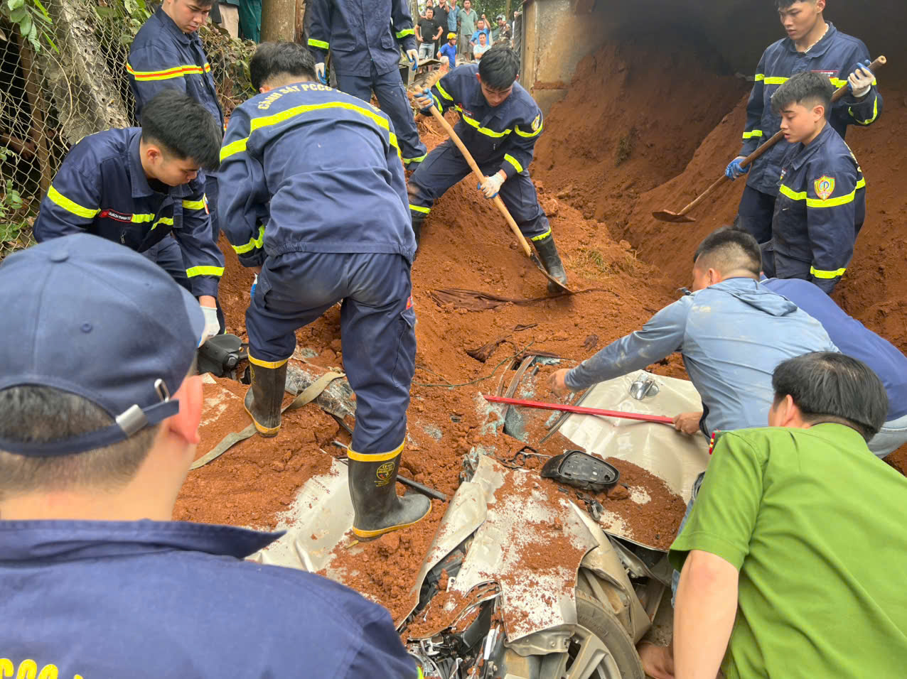 Ngay sau đó, lực lượng Cảnh sát PCCC và CNCH tiếp tục sử dụng các phương tiện chuyên dụng tìm kiếm nạn nhân còn lại đang bị vùi lấp và lúc 9h7' đã tiếp cận, đưa được thi thể nạn nhân nữ thứ 2 điều khiển xe ô tô là bà N.T.T.H (SN 1979) - giáo viên, trú tại xóm Đội 5, xã Đại Đồng, tỉnh Phú Thọ ra ngoài.