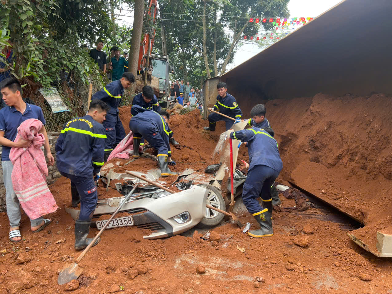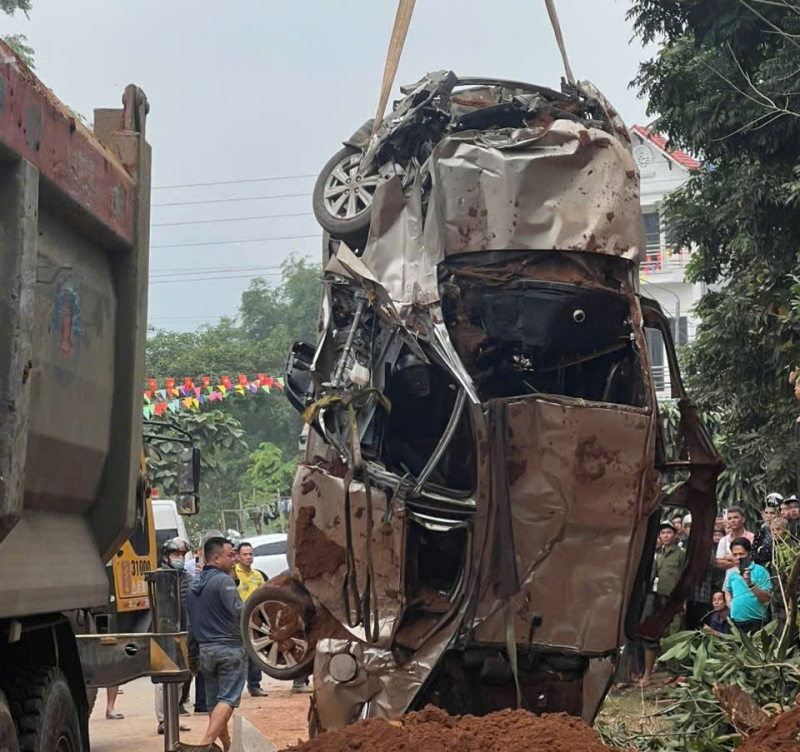 Với tinh thần khẩn trương, khắc phục khó khăn do hiện trường các phương tiện bị nạn đè chồng lên nhau, lượng đất trong thùng ô tô tải đè lấp hoàn toàn ô tô con và xe máy theo hướng ngược lại, đến 8h24’, tổ công tác của Phòng Cảnh sát PCCC và CNCH đã tìm thấy và đưa 1 thi thể nạn nhân nữ điều khiển xe máy là bà B.T.Ch (SN 1986), trú tại xóm Nạch, xã Đại Đồng tỉnh Phú Thọ) ra ngoài.