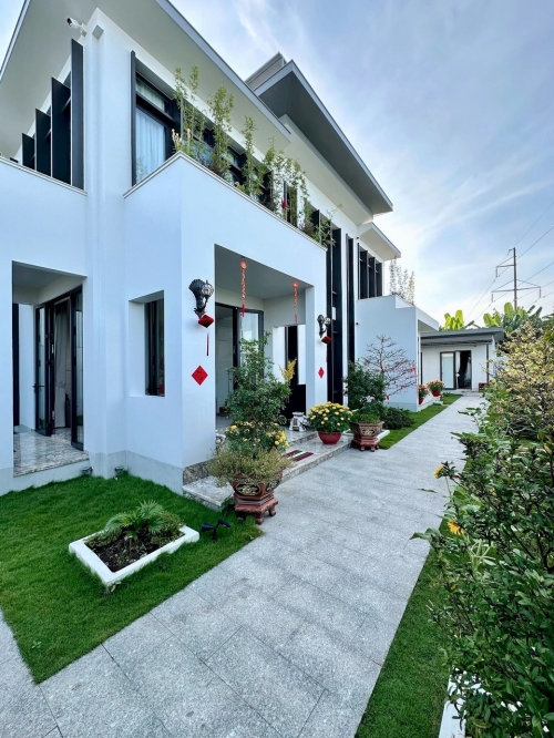 Năm 2022, anh Vinh mua gần 1.000 m2 đất tại Tiền Giang với giá 2,6 tỷ đồng. Ngay từ đầu, anh xác định xây dựng một ngôi nhà vườn rộng rãi, thoáng đãng, ưu tiên sự tiện nghi và phù hợp với sinh hoạt lâu dài của người lớn tuổi. Phong cách được lựa chọn là sự giao thoa giữa Á Đông truyền thống và hiện đại, đề cao tính bền vững và cảm giác gần gũi thiên nhiên.