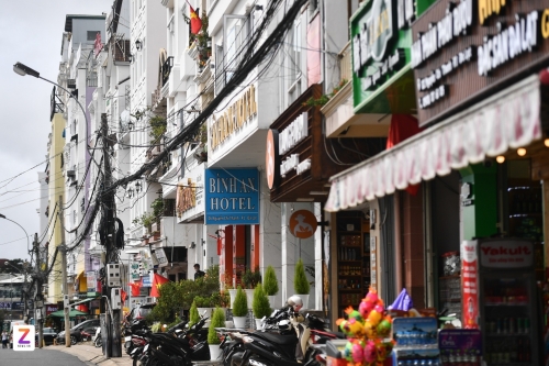 "Phố khách sạn" Nguyễn Chí Thanh (Đà Lạt cũ) với nhiều cơ sở lưu trú san sát. Ảnh: Duy Hiệu. |