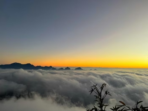 Khoảng thời gian từ tháng 11 đến tháng 3 năm sau được xem là mùa đẹp nhất để chinh phục Ngũ Chỉ Sơn. Khi tiết trời miền Bắc chuyển lạnh, mưa ít, độ ẩm cao, các thung lũng bên dưới thường được bao phủ bởi những biển mây dày, tạo nên khung cảnh kỳ ảo hiếm gặp. Ảnh Bùi Đình Sơn |