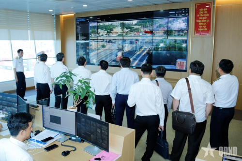 Đoàn công tác tham quan trung tâm điều hành an ninh của Cảng Tân Cảng Cát Lái. |