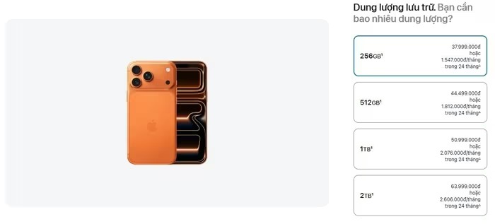 Tuy nhiên, nếu muốn nâng cấp những phiên bản cao hơn, người dùng sẽ phải chi thêm số tiền khá lớn. Cụ thể, với mẫu iPhone 17 Pro Max tại Việt Nam, mức chênh lệch giữa bản 256 GB và 512 GB là 6,5 triệu. Mức chênh tương tự giữa bản 512 GB và 1 TB, trong khi từ 1 TB lên 2 TB người dùng phải chi thêm tới 13 triệu.
