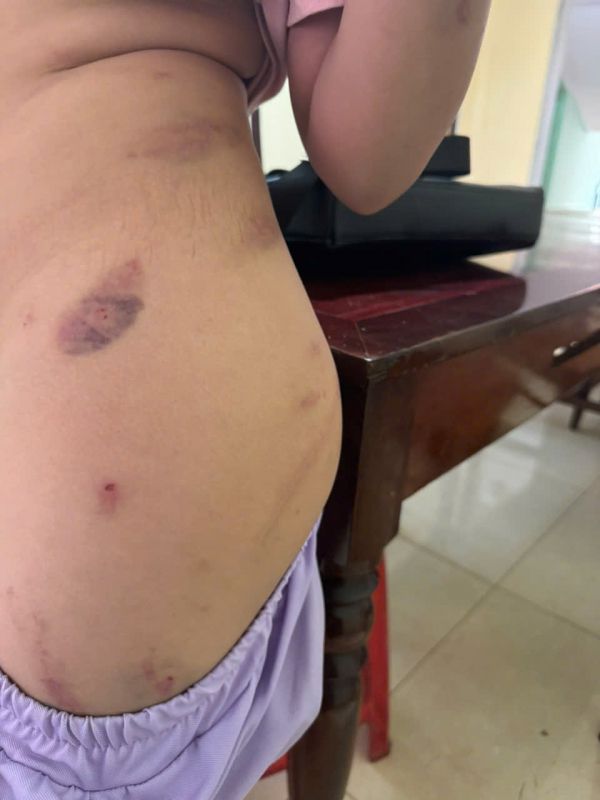 Ông T. cho biết thêm, thời gian qua, bé A. có xin về ở với mẹ và chị cho vui nên ông đồng ý. Tuy nhiên, vào chiều 13/4, ông đến đón con gái đi chơi và phát hiện trên cơ thể con có chi chít thương tích bầm tím. “Tôi gặng hỏi thì con gái thì bé nói bị mẹ đánh vào chiều ngày 12/4. Đây không phải lần đầu tiên vợ cũ tôi đánh con, nhưng đánh đến mức như vậy thì quá tàn nhẫn. Quá bức xúc, tôi đưa con đến Công an phường để trình báo với mong muốn pháp luật vào cuộc xử lý nghiêm hành vi bạo hành trẻ như vậy”, ông T. bức xúc nói.