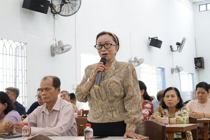 Cử tri Phạm Thị Dung phát biểu. Ảnh: PV |