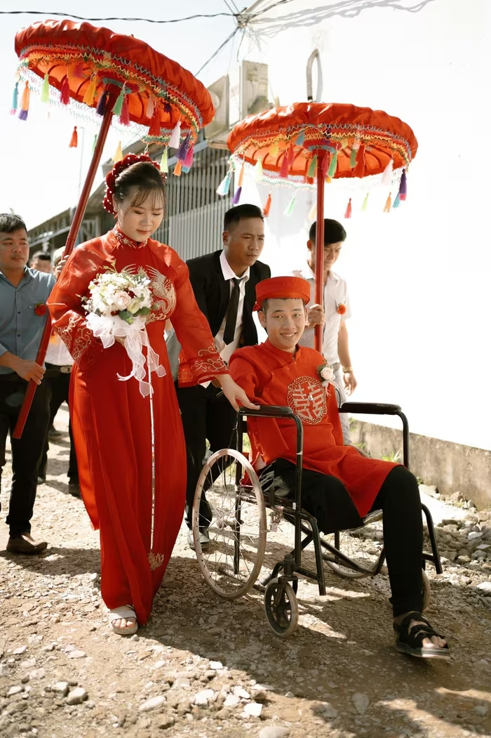 Năm 2022, cặp đôi tổ chức đám cưới. Hình ảnh chú rể ngồi xe lăn đi đón cô dâu đã khiến câu chuyện của họ lan khắp vùng quê, trở thành kỷ niệm nhiều người nhắc đến.