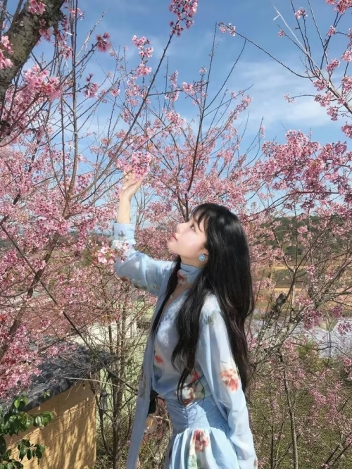 Mới đây, cộng đồng mạng lại một phen "dậy sóng" trước bộ ảnh đầy thơ mộng của một thiếu nữ bên những nhành hoa mai anh đào rực rỡ. Giữa sắc hồng dịu dàng của hoa và nền trời xanh ngắt, vẻ đẹp thanh khiết của cô gái đã khiến không ít người phải xuýt xoa. (Ảnh: IGNV) |