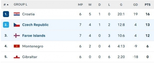 Bên cạnh đó, thất bại của CH Czech đồng nghĩa với việc Croatia 99% có vé dự thẳng World Cup. Ở lượt tiếp theo, Luka Modric cùng đồng đội chỉ cần thêm 1 điểm trước Faroe để giữ vị trí nhất bảng. Ngay cả khi Croatia thua không quá đậm, CH Czech cũng khó lòng vượt lên, do hiệu số giữa hai đội quá chênh lệch (4 so với 19).