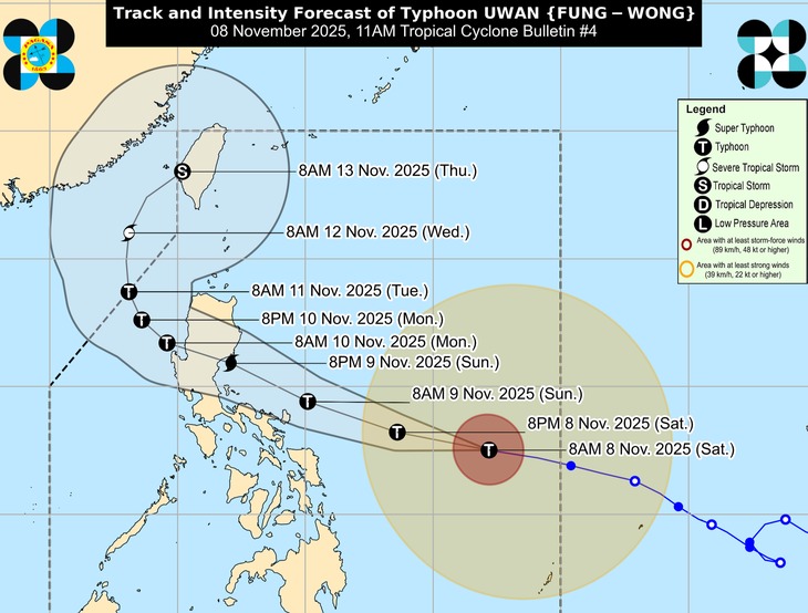 Pagasa dự báo trong hôm nay và ngày mai, bão sẽ tiến về phía đảo Luzon và cường độ có thể mạnh lên cấp siêu bão (trước khi đổ bộ vào đảo này vào khoảng tối mai).