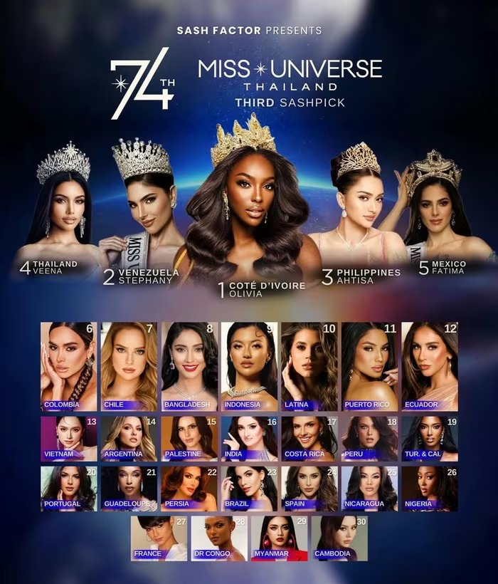 Mới đây, fanpage sắc đẹp quốc tế Sash Factor một trong những trang chuyên dự đoán và phân tích các cuộc thi nhan sắc uy tín, đã công bố bảng xếp hạng dự đoán cho đấu trường Miss Universe 2025.
