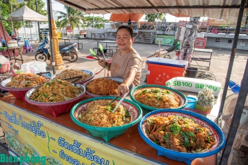 Một gian hàng ẩm thực đường phố nằm cạnh sông Mê Kông. Ảnh: Lê Văn Chương |