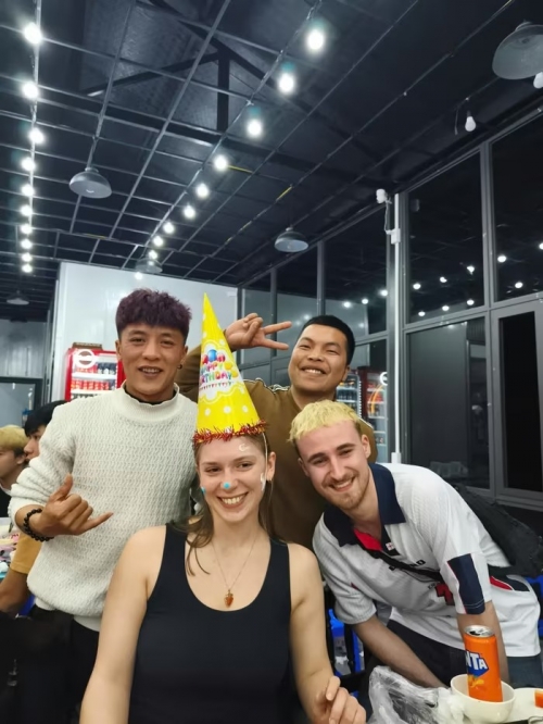 Các thành viên trong đoàn tổ chức sinh nhật cho một nữ du khách nước ngoài. Ảnh: NVCC. |
