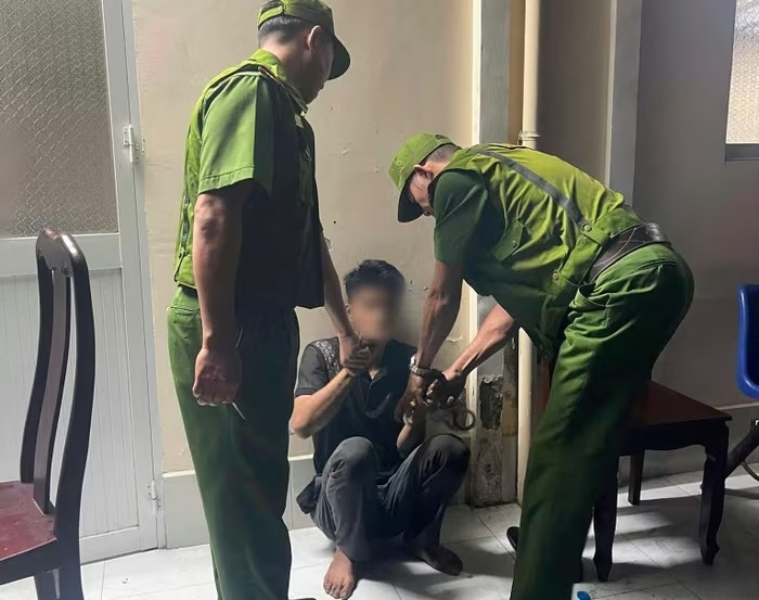 Đối tượng Nguyễn Văn Nhớ bị khống chế trong lúc đột nhập trái phép vào trụ sở Khối Cảnh sát. |