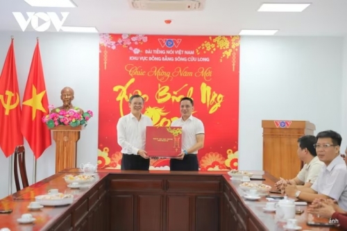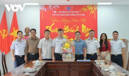 Cũng nhân dịp Tết cổ truyền Bính Ngọ 2026, đoàn công tác Bộ Tư lệnh Vùng 5 Hải quân cùng nhiều cơ quan, đơn vị địa phương đến thăm, chúc Tết Đài Tiếng nói Việt Nam, Cơ quan Thường trú khu vực Đồng bằng sông Cửu Long.