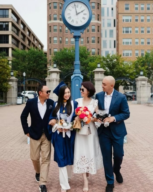 Về học vấn, tiểu thư của gia tộc Sơn Kim tốt nghiệp đại học tại Đại học Boston (Mỹ) tháng 5/2023, rồi hoàn thành chương trình thạc sĩ ở Đại học George Washington (Mỹ) sau đó 2 năm. Gia đình cũng bay sang Mỹ, tham dự lễ tốt nghiệp thạc sĩ của Ruby Nguyễn vào năm 2025. “Bất ngờ thay, tôi nhận ra mình đã tiến xa đến thế nào. Chương này khép lại với niềm vinh dự lớn lao. Nó bắt đầu từ những câu chuyện của bà ngoại, sự hy sinh của bố mẹ và tình yêu thương của bạn bè. Tôi hy vọng điều này sẽ làm bố mẹ tự hào”, cô chia sẻ đầy xúc động trên trang cá nhân. |