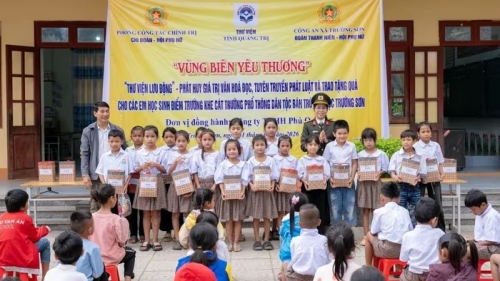 Lần đầu tiên, sáng kiến “Thẻ kỹ năng an toàn” của Chi đoàn Phòng Công tác chính trị Công an tỉnh được ra mắt và trao tặng cho 200 học sinh tại các điểm trường của xã Trường Sơn. |