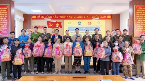 Trong khi đó, trong hội trường trụ sở xã biên giới Trường Sơn, đoàn công tác của các cơ quan ở Quảng Trị tặng những suất quà Tết, mang tới không khí ấm áp cho đồng bào nơi biên cương Tổ quốc. |