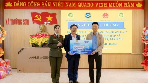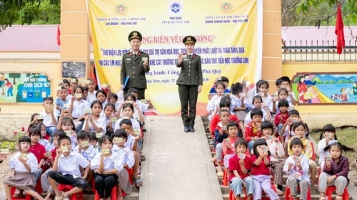 Lãnh đạo Phòng Công tác chính trị Công an Quảng Trị tặng chiếc TV 65 inch và “Tủ sách văn hóa-pháp luật” với hơn 200 đầu sách cho Nhà sinh hoạt cộng đồng xã, góp phần tạo dựng thói quen đọc sách và tìm hiểu pháp luật trong nhân dân. |