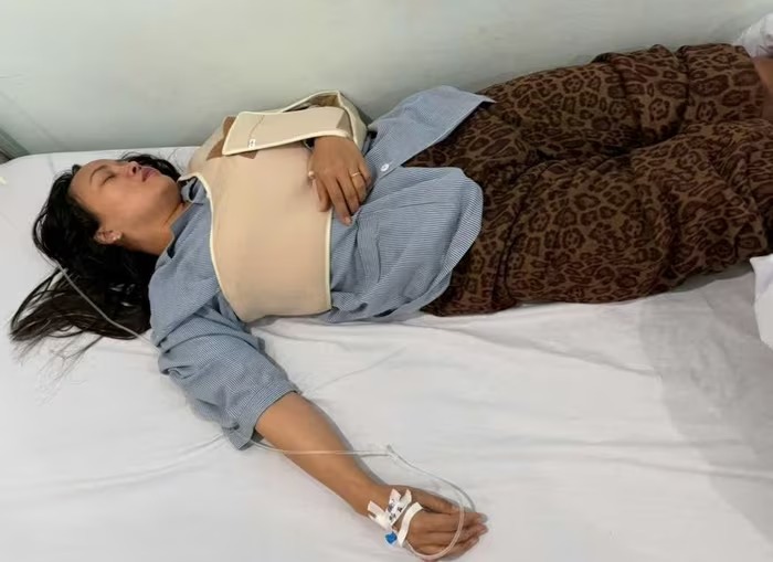 Chị Trương Thị Hương nằm viện cấp cứu tại Bệnh viện Hữu Nghị Việt Tiệp. |