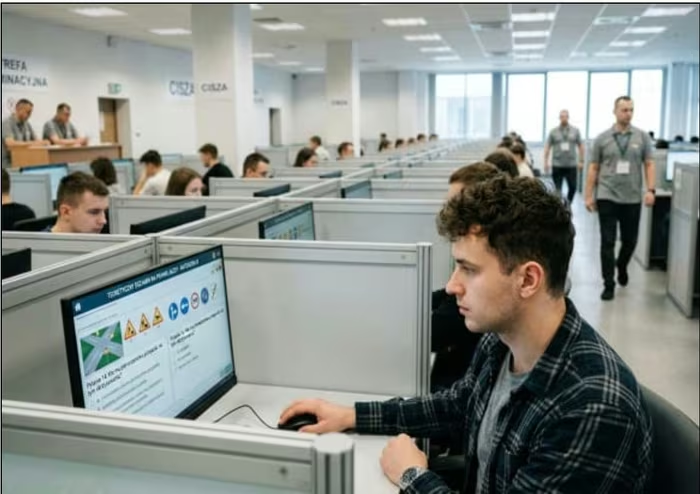 Tại Ba Lan cũng như nhiều quốc gia châu Âu khác, người học lái buộc phải vượt qua bài thi lý thuyết trên máy tính trước khi được phép thi thực hành. Nếu không đỗ phần này, mọi cánh cửa để cầm vô lăng hợp pháp đều đóng lại. Trong khi đa số thí sinh chỉ cần từ 1 đến 3 lần là vượt qua thì trường hợp này được xem là cực kỳ hiếm.