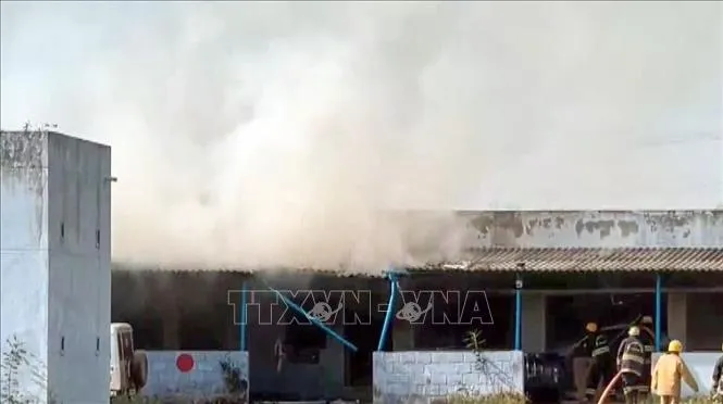 Hiện trường vụ nổ nhà máy sản xuất pháo hoa ở huyện Virudhunagar thuộc bang Tamil Nadu, Ấn Độ ngày 19/4/2026. Ảnh: ANI/TTXVN |
