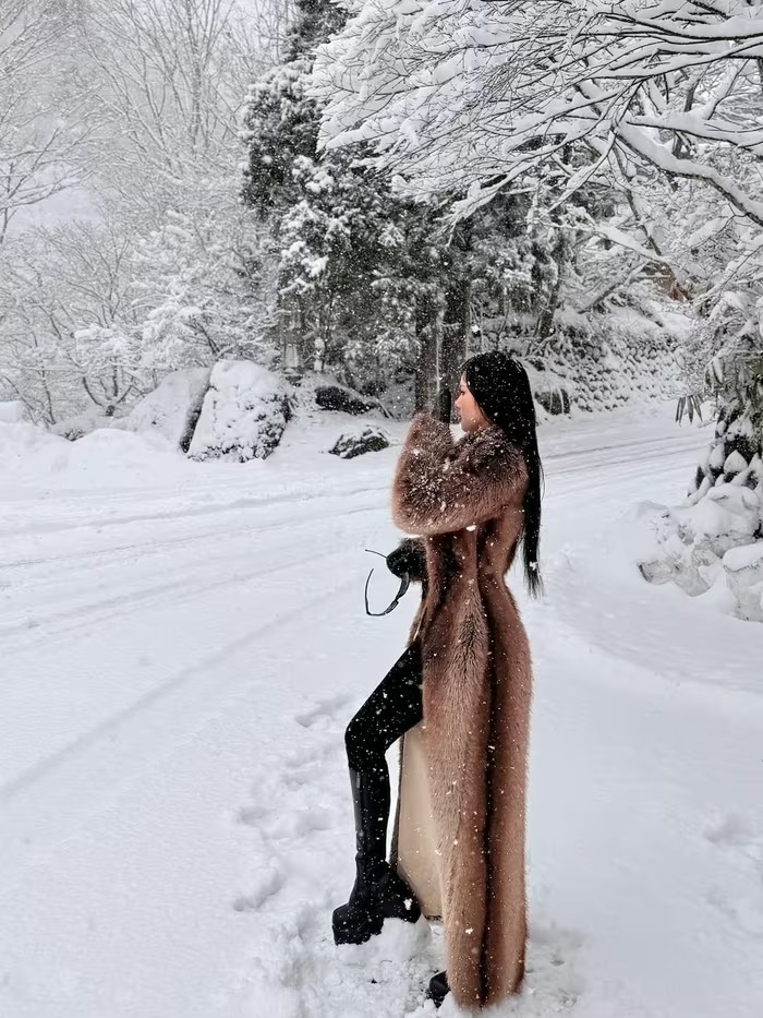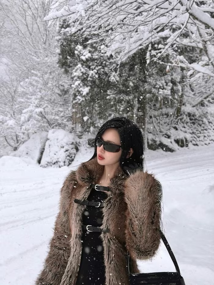 Trong loạt hình này, cô nàng diện chiếc áo khoác lông sang trọng, giúp giữ ấm tuyệt đối giữa nền nhiệt dưới 0 độ mà vẫn cực kỳ thời thượng. Bên trong lớp áo lông là bộ đồ đen ôm sát kết hợp cùng boots cao cổ, tôn lên đôi chân dài miên man và vóc dáng chuẩn chỉnh.(Ảnh: IGNV) |