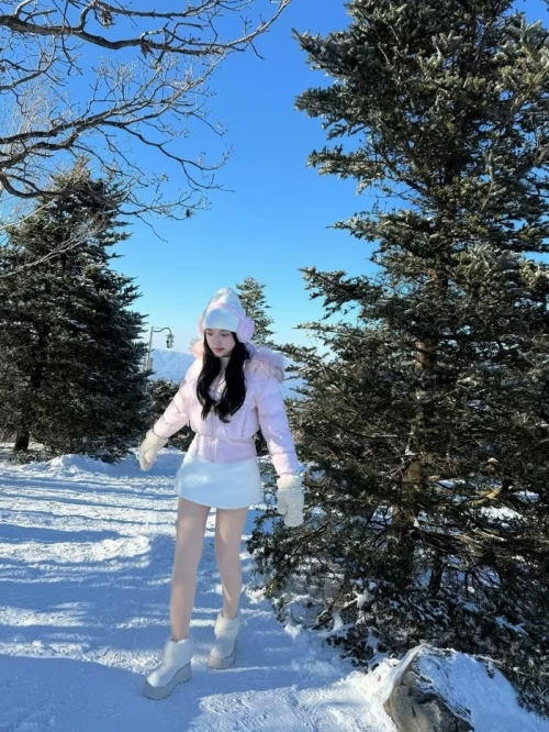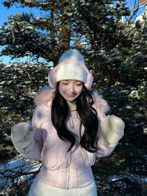 Giữa không gian ngập tràn tuyết trắng của vùng Gangwon, cô nàng khéo léo lựa chọn trang phục tông màu hồng phấn và trắng làm chủ đạo, tạo nên tổng thể vừa ấm áp vừa tôn lên làn da trắng không tì vết. (Ảnh: IGNV) |