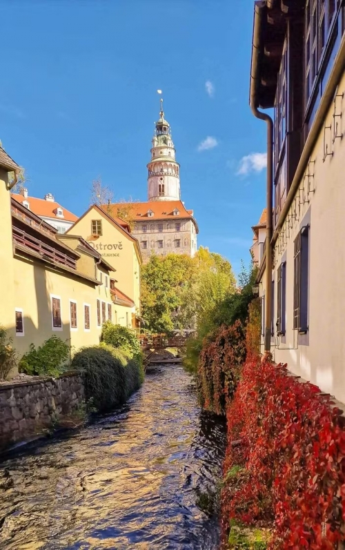 Ngôi làng nằm bên dòng sông Vltava, ở phía Nam Cộng hòa Séc. Vào mùa thu, Cesky Krumlov trở nên nổi bật với những mái ngói đỏ cam và khung cảnh thiên nhiên đổi sắc. Ảnh: Nguyễn Tất Thịnh |