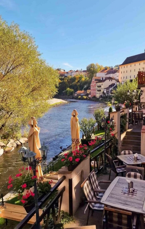 Dòng Vltava chảy qua làng tạo nên cảnh quan mềm mại, đặc biệt ấn tượng trong những ngày thu khi màu lá thay đổi. Ảnh: Nguyễn Tất Thịnh |