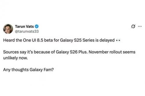 Bài viết trên X của leaker Tarun Vats nói về sự trì hoãn One UI 8.5 cho dòng S25.