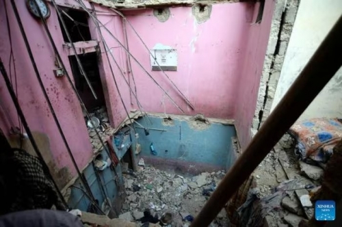 Một phần tòa chung cư ở Pakistan đổ sập sau tiếng nổ. Ảnh: Xinhua |