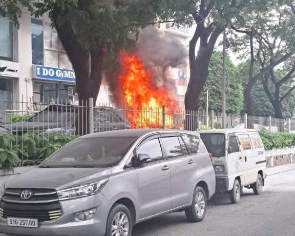Ô tô 5 chỗ đang dừng ở chung cư H.A.R.V, phường An Khánh, TP. HCM bất ngờ bốc cháy khiến người dân hoảng loạn